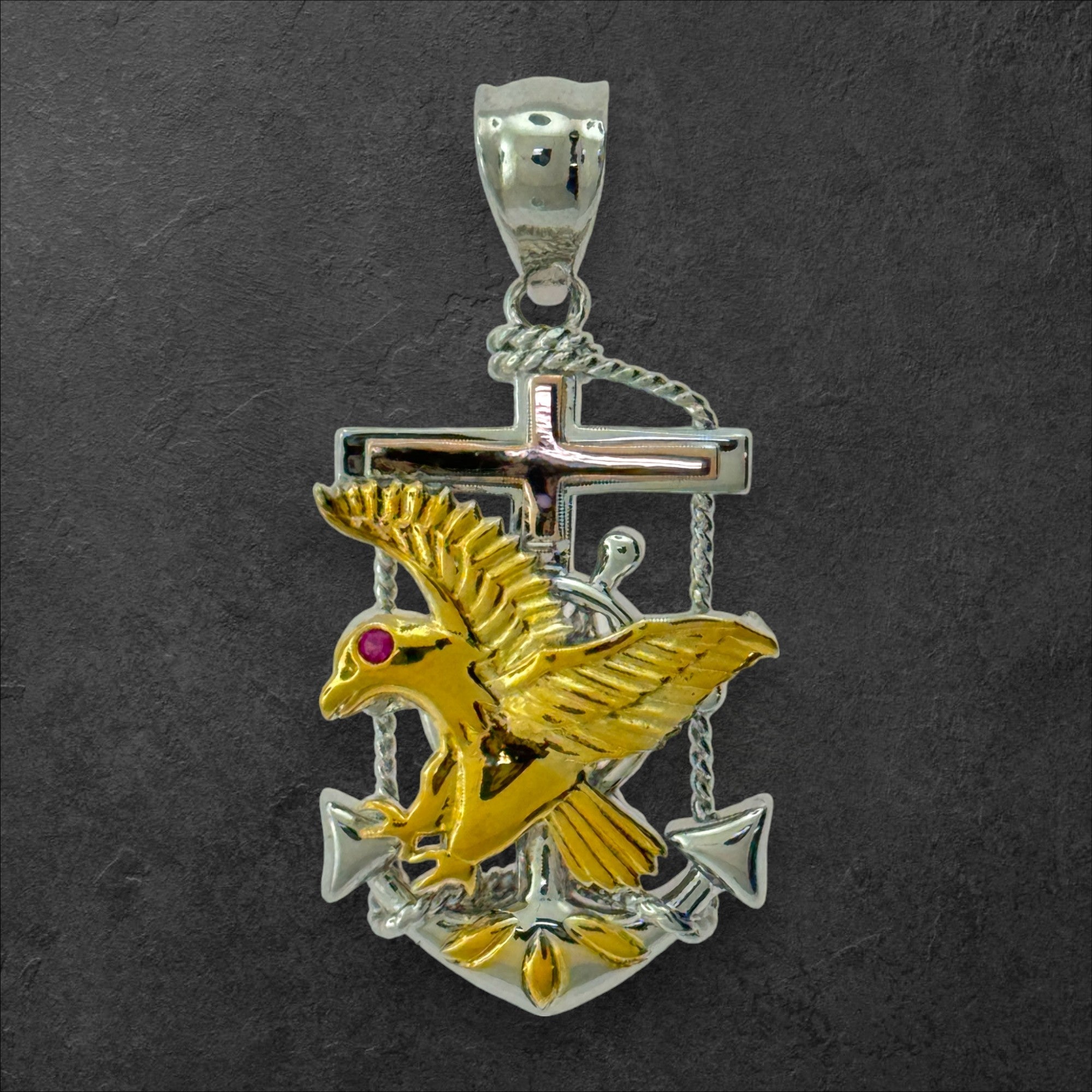🔹 Embrace Freedom with the Sterling Silver CZ Mariner Eagle Pendant