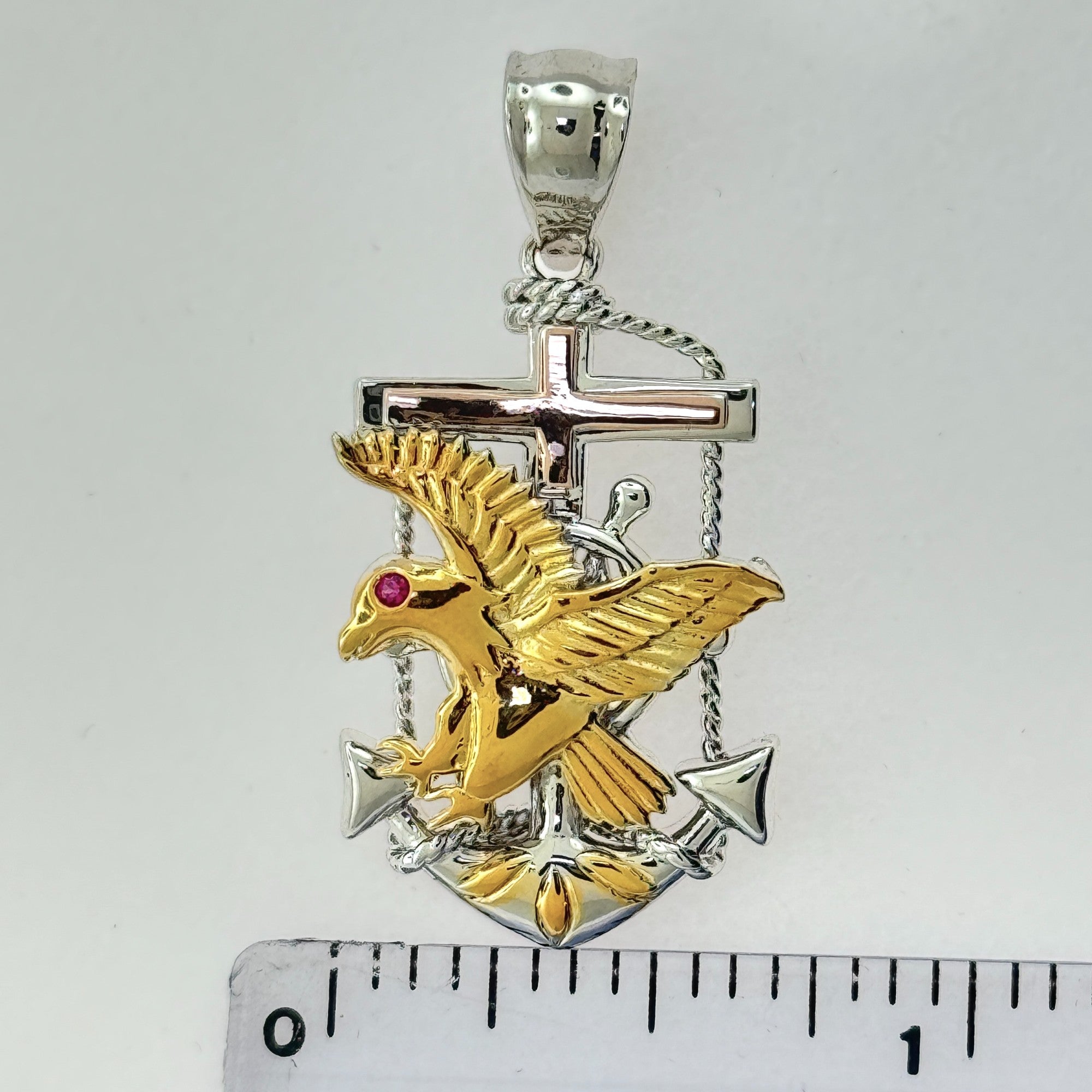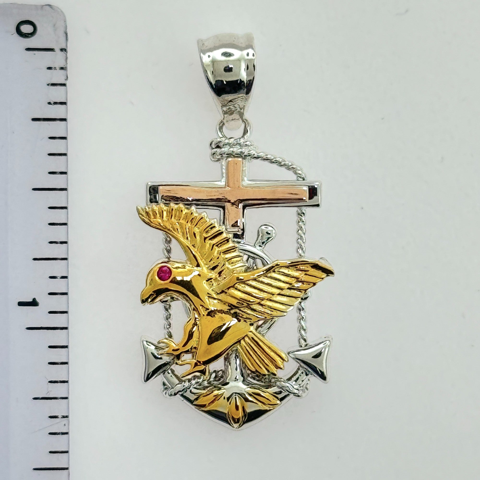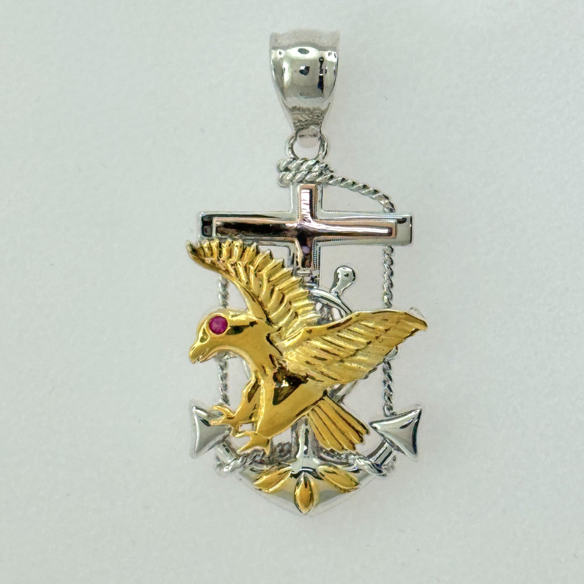 Sterling Silver CZ Mariner Eagle Pendant