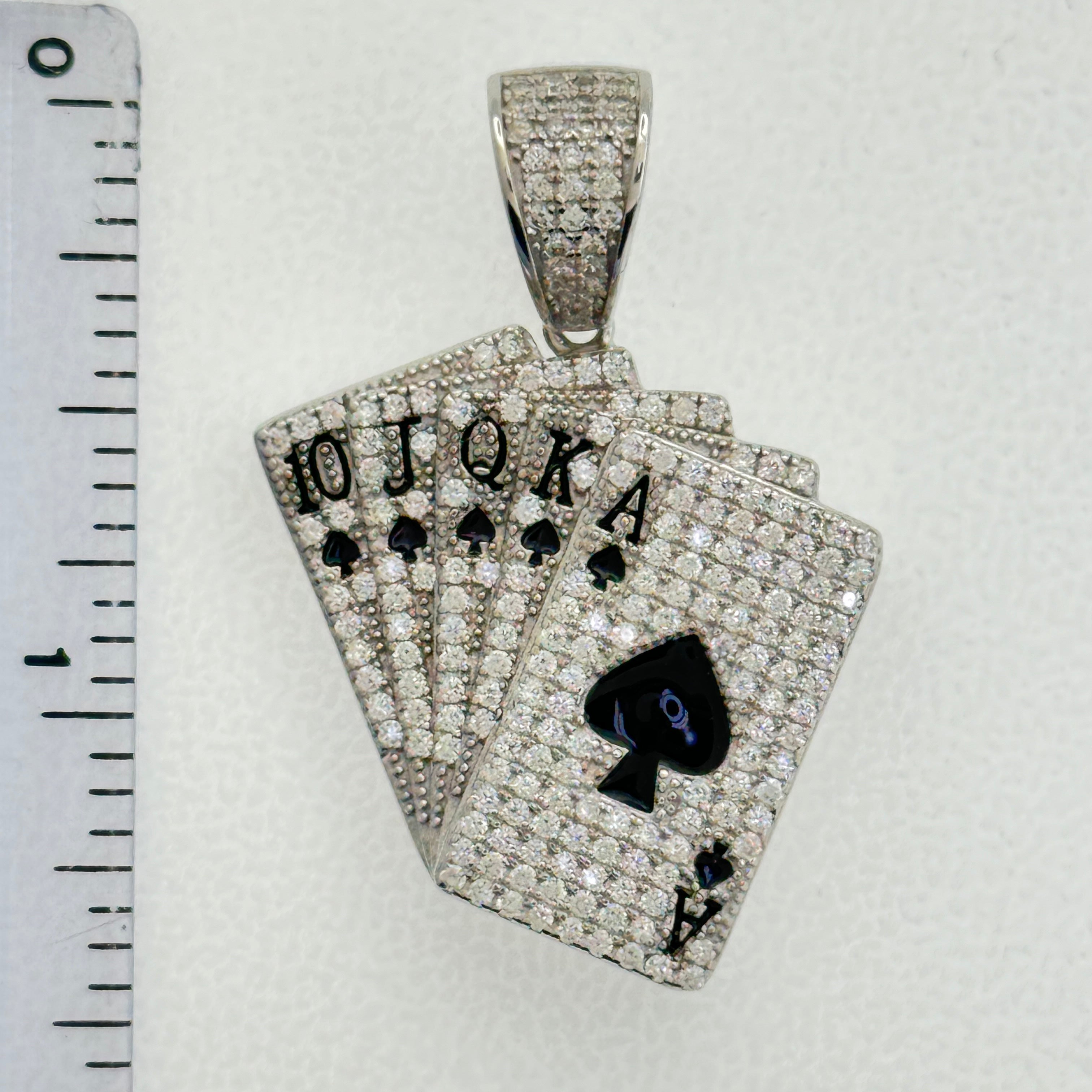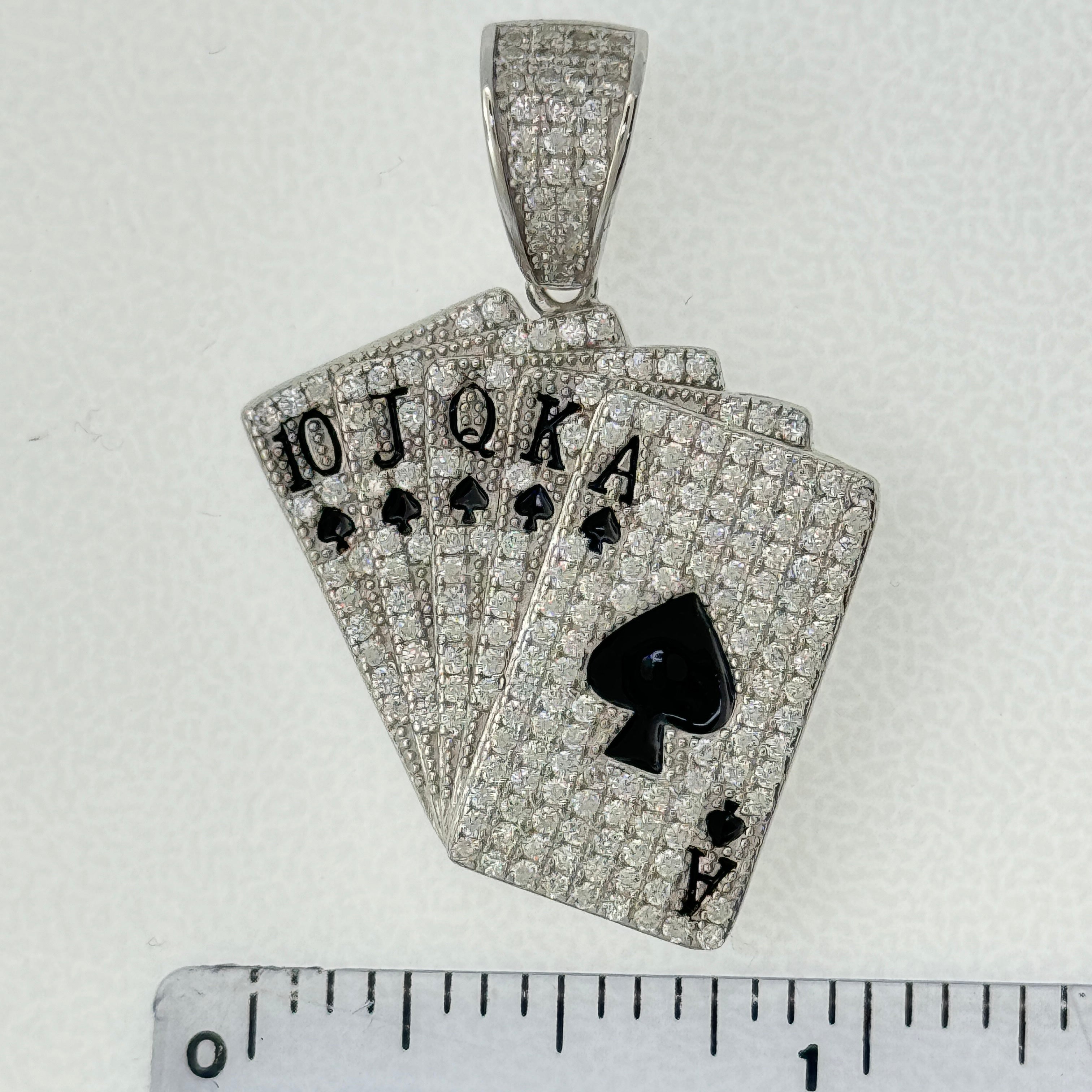 🔹 Illuminate Your Style with 925 Sterling Silver CZ Playing Cards Poker Pendant