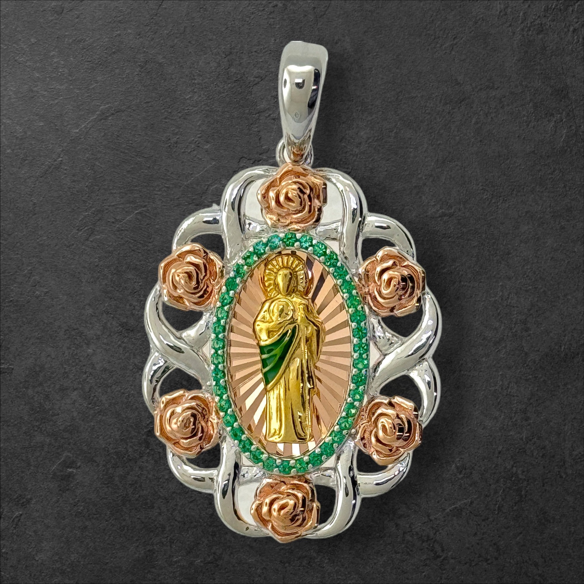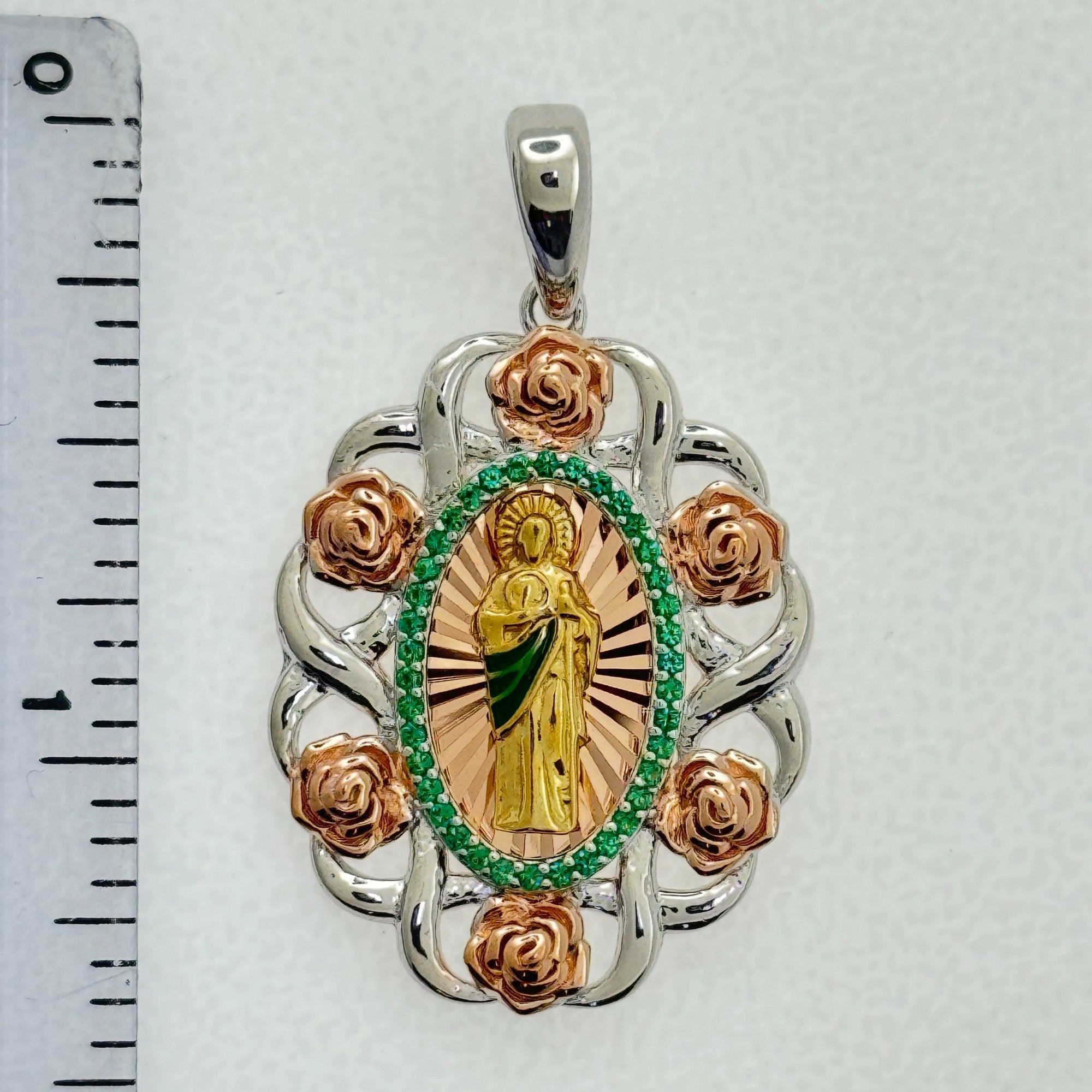 🔹 Illuminate Your Spirituality with the Sterling Silver CZ Saint Jude Pendant