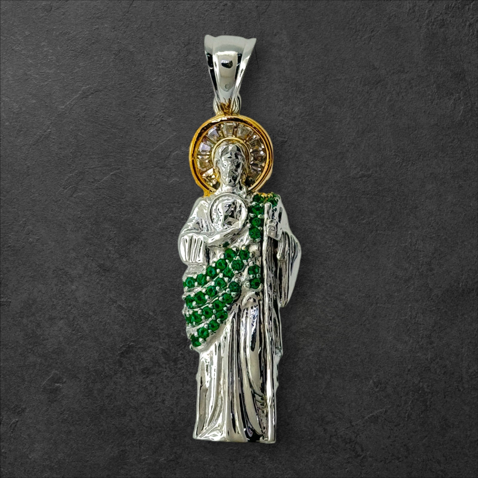 🔹 Illuminate Your Spirituality with the Sterling Silver CZ Saint Jude Pendant