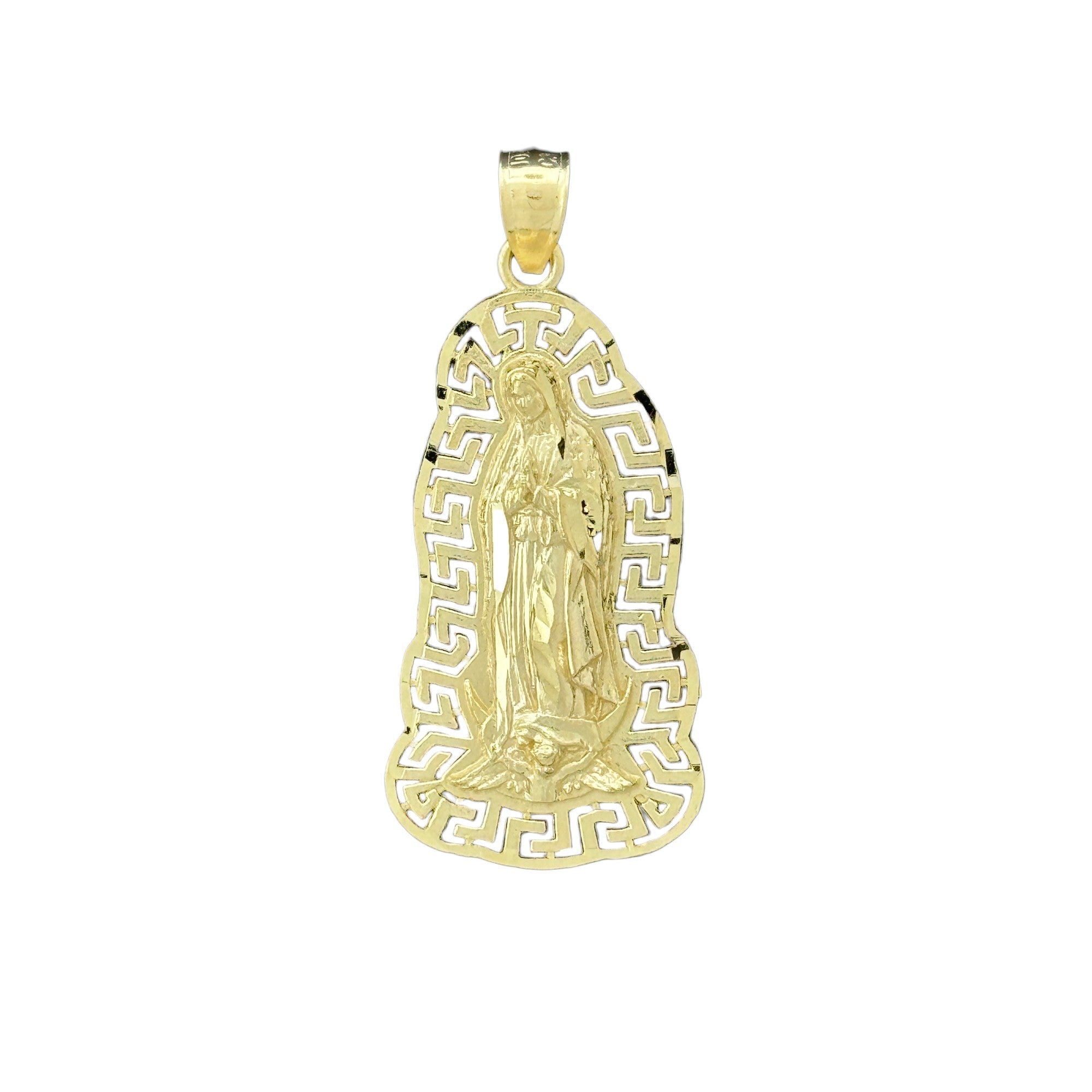 Celebrate your faith with this beautifully crafted 10KT Gold Virgin Mary Pendant. Weighing 1.7g and featuring a 2mm bail, this pendant offers a delicate and reverent depiction of the Virgin Mary, making it a meaningful accessory for any occasion. A thoughtful gift for loved ones or a special addition to your own collection. Order now to add a touch of spiritual elegance to your jewelry!
